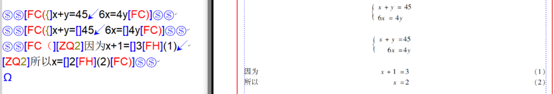 <方程组注解>:用于排方程组,读作“方程”