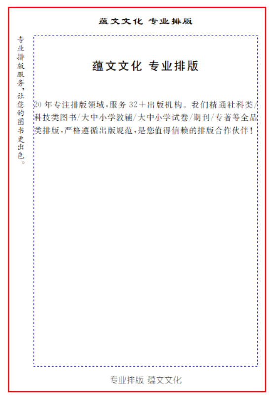 :用于排版心以外的内容,多用来设计各种形式的书眉和页码。读作“边文”。